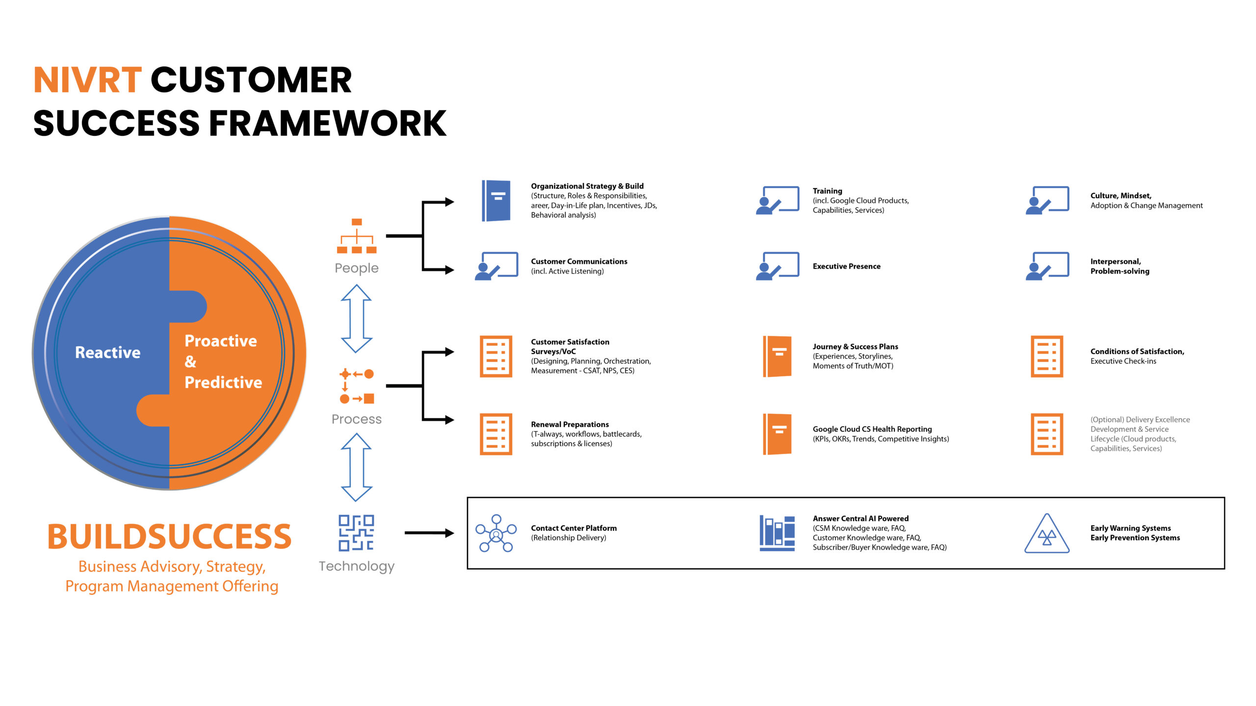 NīVRT provides end-to-end Customer Success framework to drive retention for its customers and their buyers and subscribers, by enabling the competitive advantage for ever-increasing renewals. The Customer Success framework will include start-up kits across people, processes, technology with playbooks, workbooks across proactive and reactive steps for training & on-boarding of buyers and subscribers, their deployment of products & services, their support, thereby making buyers and subscribers be your champions.